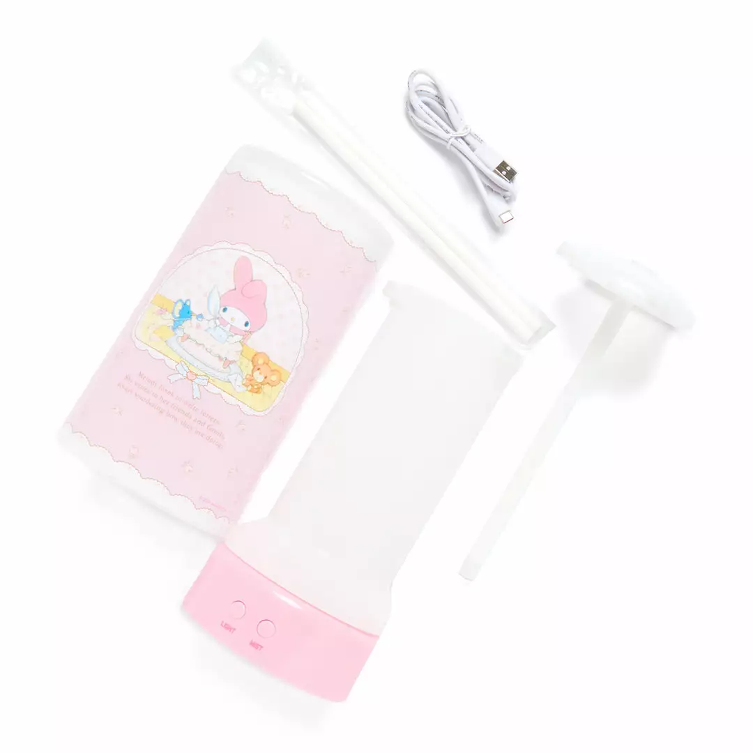 Dry throat and itchy skin? Help alleviate dry air with this desk-side humidifier featuring My Melody! It has a gentle glowing light which is the perfect nightlight as you work into the evening. It’s also rechargeable via USB, so you can plug it into your computer for convenience.
