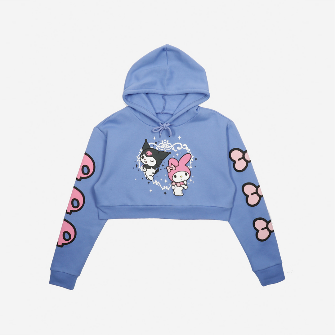 With Kuromi dressed as a devil and My Melody as an angel, this cropped hoodie is giving everything we’ve ever wanted. The left sleeve has bow graphics and the right has Kuromi’s iconic skull.
